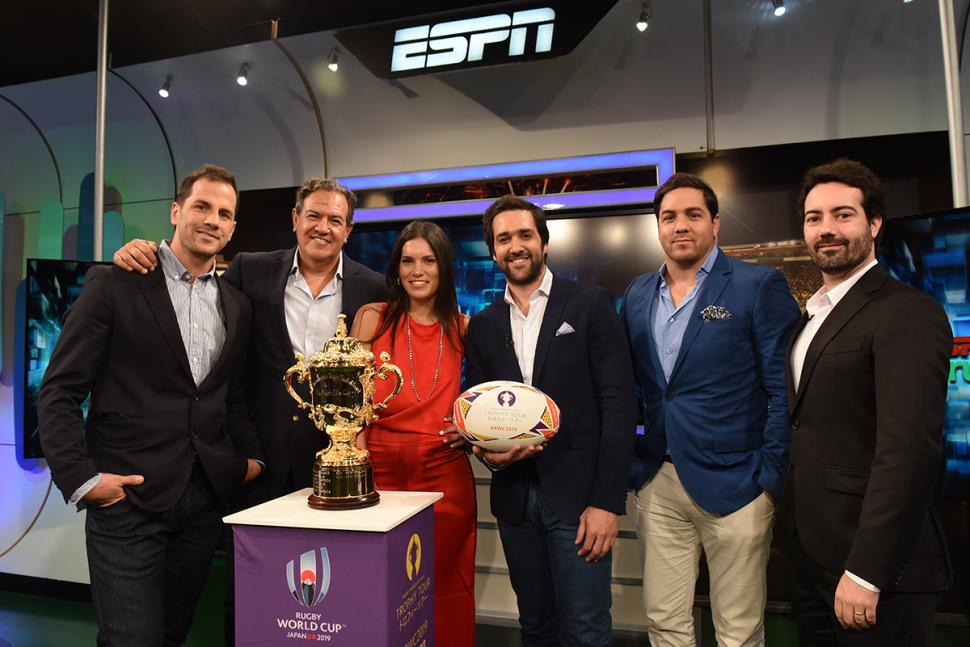 En su paseo por distintos lugares de Buenos Aires la Copa Webb Ellis también pasó por los estudios de ESPN ante la presencia de periodistas de distintos puntos del país. El canal deportivo, que cubrirá en Japón su sexto Mundial, contará con un grupo de especialistas que incluye a ex jugadores de Los Pumas con pasado mundialista, como Diego Albanese y Horacio Agulla. En el equipo también estarán Alejandro Coccia, Martín Altberg, Tomás De Vedia y Agostina Larocca.