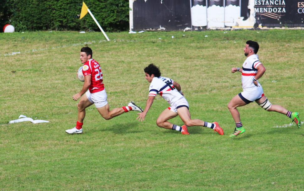 UNA CONQUISTA CLAVE. Mateo Carreras se dirige al ingoal de los Blancos para anotar un muy buen try, y fundamental para cimentar la victoria de lso "Rojos". FOTO: TERCER TIEMPO NOA