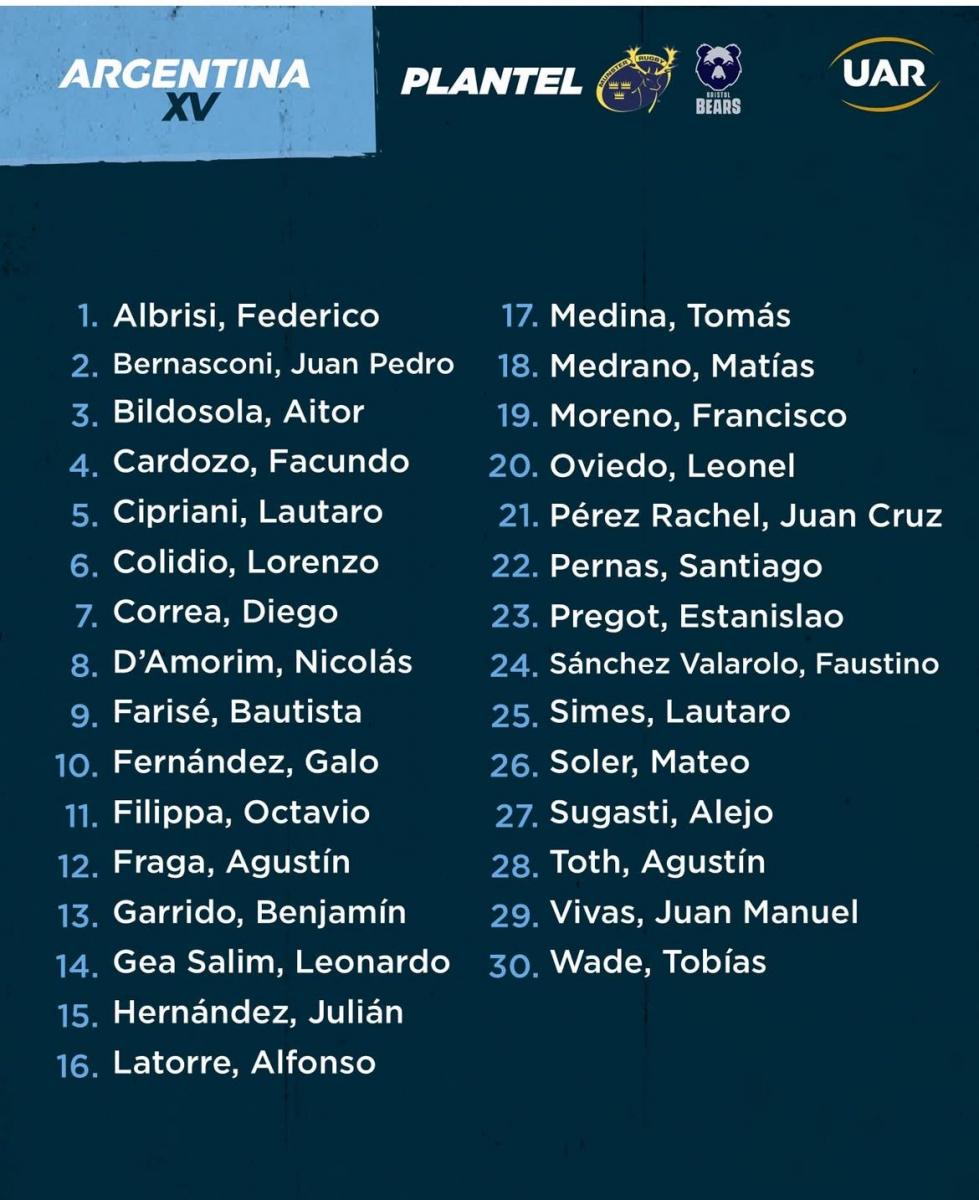 A continuación, los convocados de Argentina XV para la gira por europa: